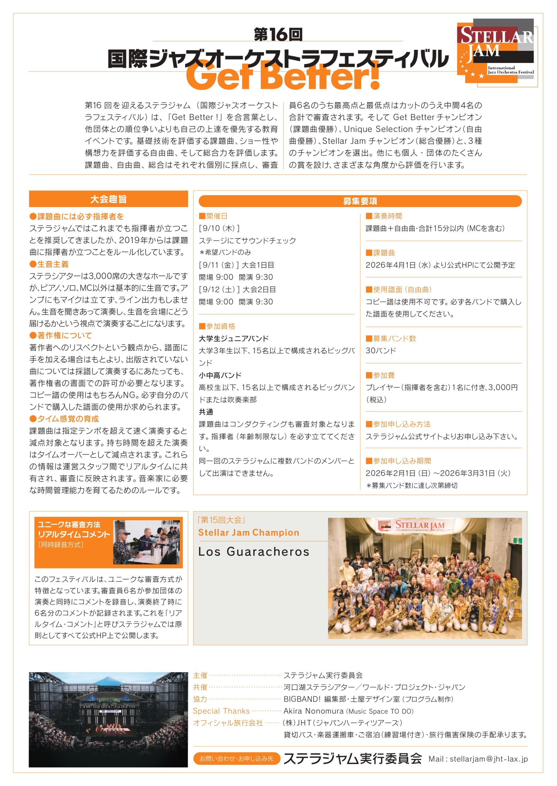 | 大会名称 | 第16回国際ジャズオーケストラ・フェスティバル ~ステラジャム~ |