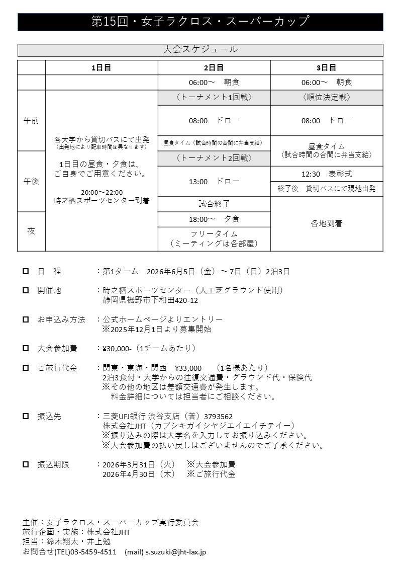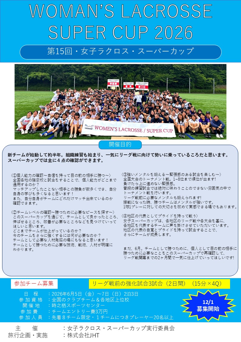 | 主催 | 女子ラクロス・スーパーカップ実行委員会 |